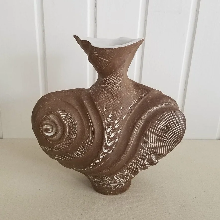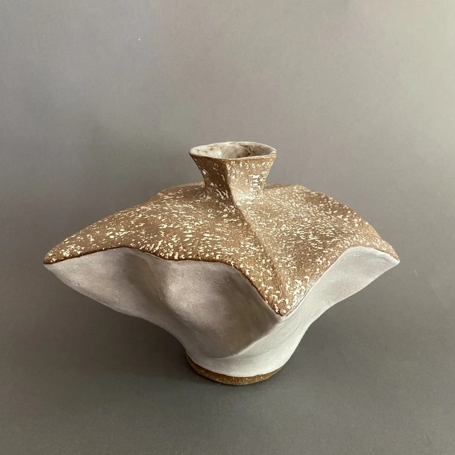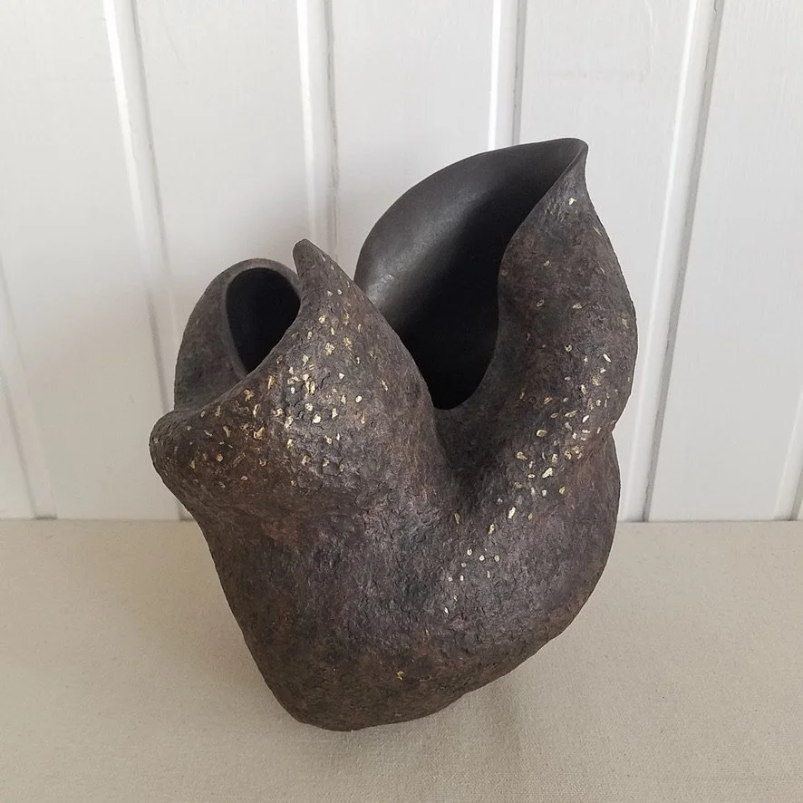 Artmaking is always a response to something — for me, mostly to the designs found in nature and how those want to be felt, appreciated, and interpreted. I experience this less as a conscious choice than as a friendly compulsion. I like to describe my pieces as sculptural vessels: not necessarily "pottery," as that denotes a commitment primarily to practical use, but work that references — and sometimes even functions as — practical objects, rooting it in pottery's ancient origins as utensils for daily life. Though I always ask myself what substance or object any given piece might hold, sometimes the answer is intangible and mysterious.